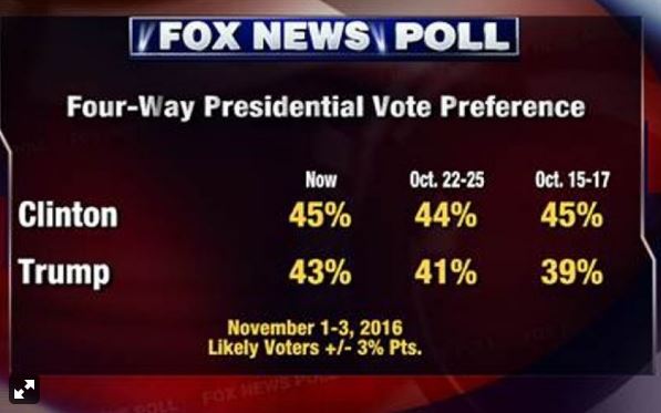 Кандидаты сократили разрыв, ранее преимущество было также на стороне Клинтон, но с разницей в 4-5%.