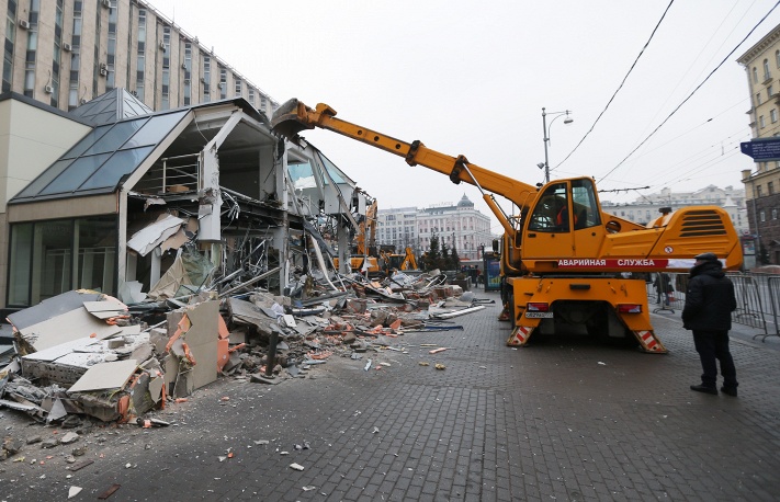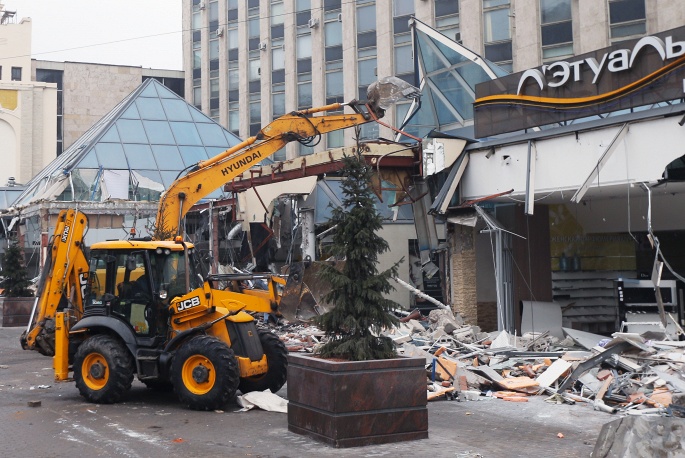 К торговому центру «Пирамида» на Тверской улице в Москве прибыла спецтехника, которая начала снос строения.