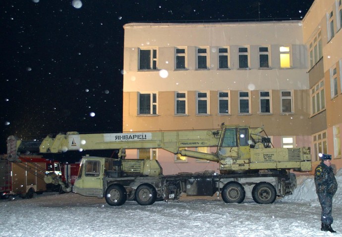Из официального сообщения МЧС: «27 января в 9:20 по местному времени в спортивном зале, пристроенном к зданию школы, обрушилось железобетонное перекрытие. В момент обрушения в зале на уроке физической культуры находились 47 учащихся 9—10-х классов и 3 преподавателя. При обрушении пострадали 9 человек, из них 6 оказались завалены строительными конструкциями: преподаватель 1955 года рождения и 5 учащихся 1987—1989 годов рождения. Трое учащихся, получивших травмы различной степени тяжести, доставлены в больницу».