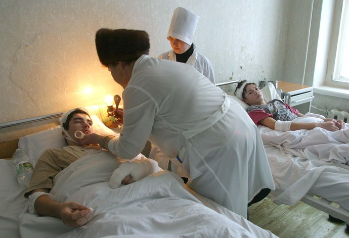 Но вот ребята в одном из углов зала стояли целой кучей, человек 5—7. Плита падала на них, но повисла на арматуре — так они и выжили. Девочки из 9-го класса пошли смотреть что-то у физрука в подсобке: то ли фотографии, то ли видео с выпускного. Они только закрыли дверь, как все рухнуло. Открыли — а там завалы.