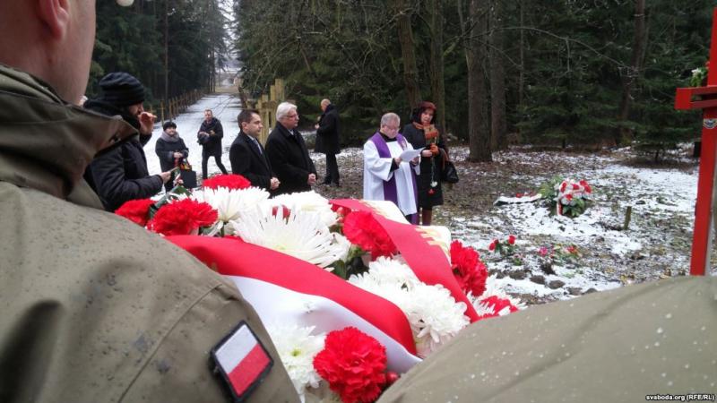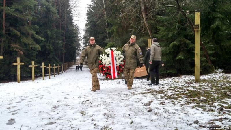 Венок несли польские военные. Также возле крестов прочитали молитву.