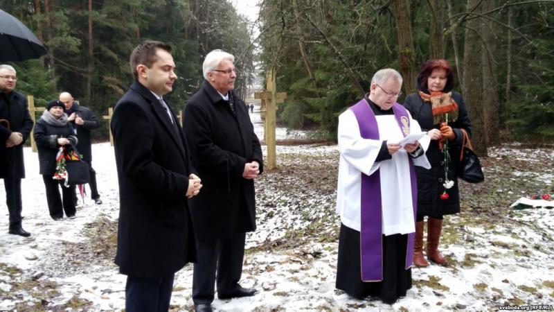 Глава МИД Польши Витольд Ващиковский в начале своего визита в Беларусь посетил места захоронения жертв репрессий в Куропатах.