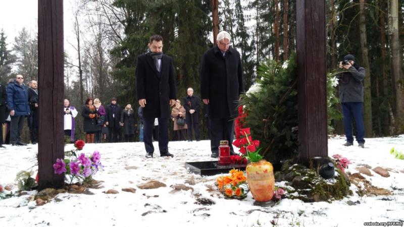 Вместе с новым послом Польши Конрадом Павликом они возложили венок к установленным в урочище Куропаты крестам.