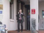 Набор штампов от тиражируемых российской пропагандой отличается мало. По завершении политбеседы, Василий Горбатенко удалился обратно в здание, откуда была вызвана полиция. Патрульных машины приехало всего две, в момент, когда со своим плакатом стоял Михаил. Полицейские переписали данные активисты и взяли у него объяснение в устной форме, при этом, вели себя довольно корректно.