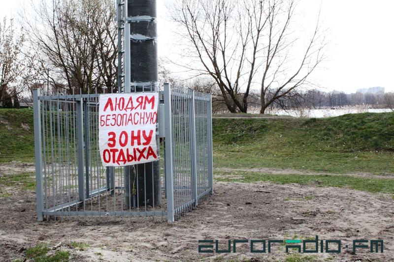 "Людям - безопасную зону отдыха" - такой транспарант 31 марта появился на набережной Франциска Скорины в Бресте. Его вывесили местные жители на вышке оператора сотовой связи, которую построили в начале марта, сообщает "Еврорадио".