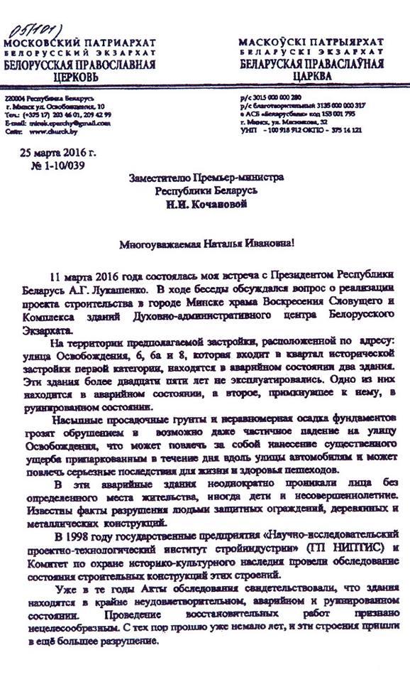 Глава Белорусской православной церкви просит исключить упомянутые здания из списка историко-культурных памятников, "поскольку они не имеют никакого исторического значения и не представляющие культурной или архитектурной значимости". Предлагается также согласовать демонтаж этих зданий без восстановления.