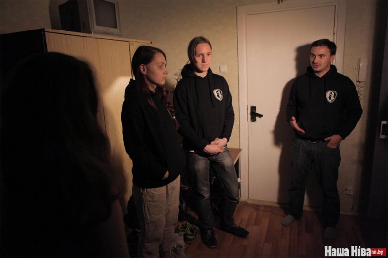 Команда прибыла на машине с фирменной наклейкой, одетая в байки с логотипом «Охотники за привидениями». Мастера довольно молодые: Дима работает с энергетикой человека и пространства, Тимофей - специалист по сущностям, заканчивает БГУИР, работает сисадмином, Анастасия - медиум (еще она студентка).