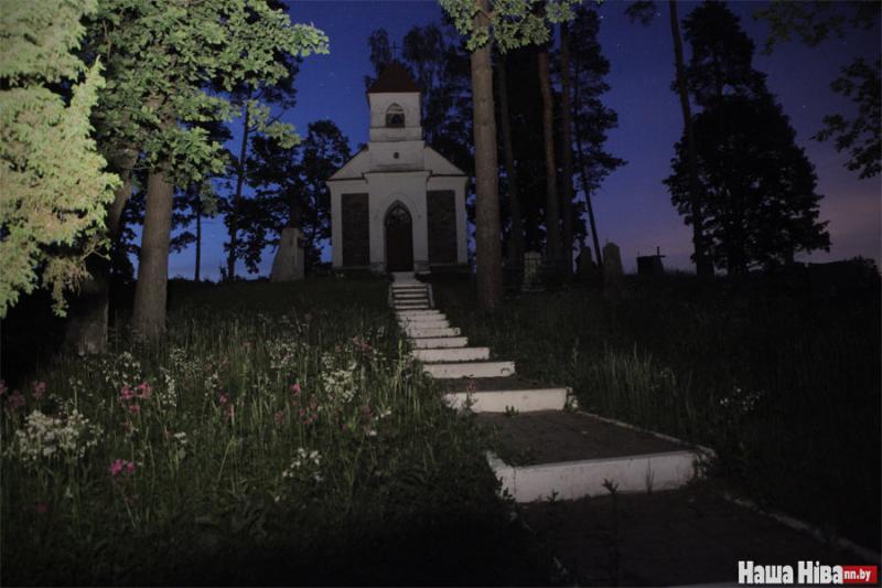 Поскольку мы так и не смогли отыскать что-то необычное на вызове, Дима предложил съездить с ними на игру «Испытание силы». Каждый, кто чувствует в себе сверхсилы, может подать заявку и за 500 000 поупражняться в своих навыках. Численностью в 10 человек из ТЦ «Материк» мы отправились к реке Ислочь, в 30 км от Минска. На выбранной точке у реки проходил фестиваль, поэтому решили изменить маршрут. Объехав еще несколько мест, стало понятно, что игры может и не быть. По дороге вдруг Дима сбавил скорость и сообщил, что почувствовал нужное место. Машина въехала за лес, и мы увидели костел и кладбище. В руках Дима держал навигатор. Рядом, на поле, и решили начать игру.