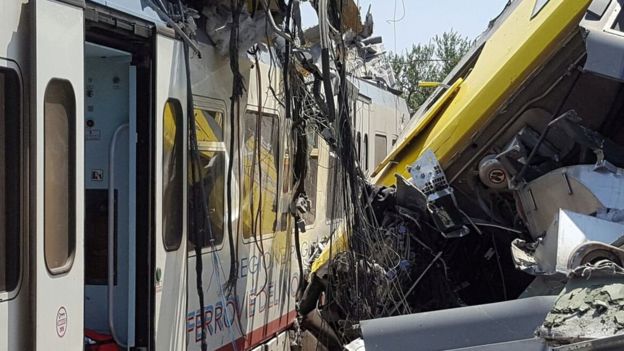 На кадрах, показанных итальянскими телеканалами, видно, что несколько вагонов столкнувшихся поездов полностью разрушены. Оба поезда принадлежали частной транспортной компании Ferrotramviaria SpA, сообщает ВВС.