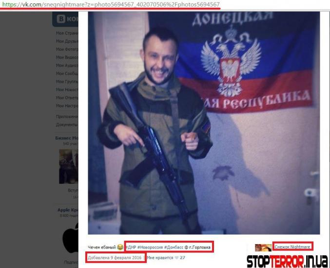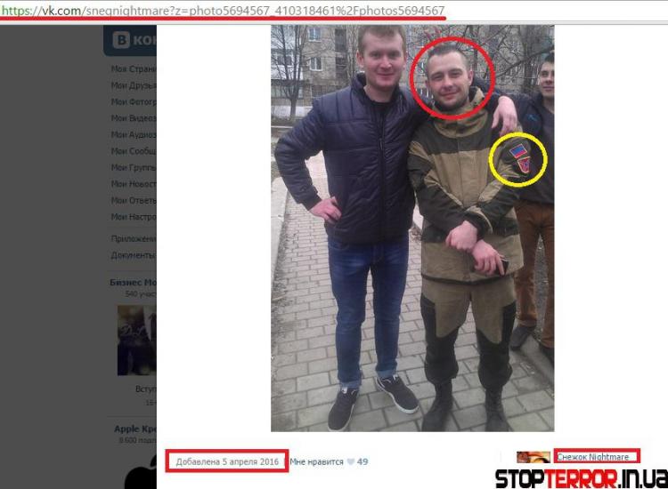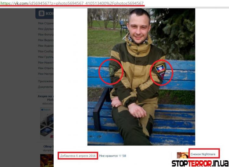 А вот фото, сделанное в апреле 2016-го года. На Хореве форма «Горка» используемая боевиками, а также нашивки, которые являются обозначением боевиков ДНР.