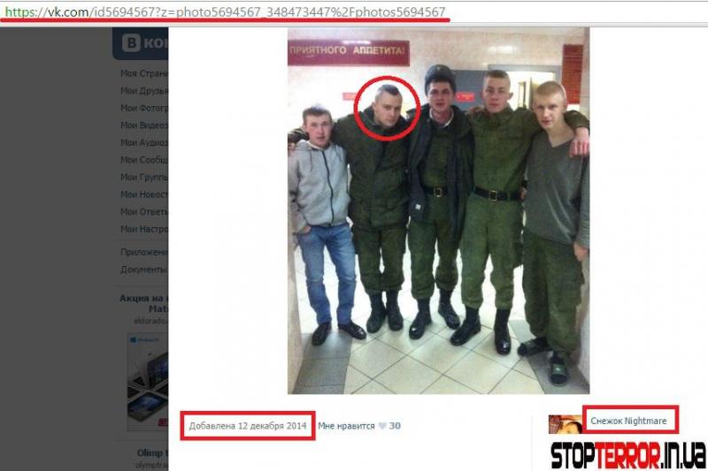 23-го ноября 2014-го года в социальной сети «Одноклассники» Хорев Артем публикует фото, благодоря которому удалось установить его место службы.