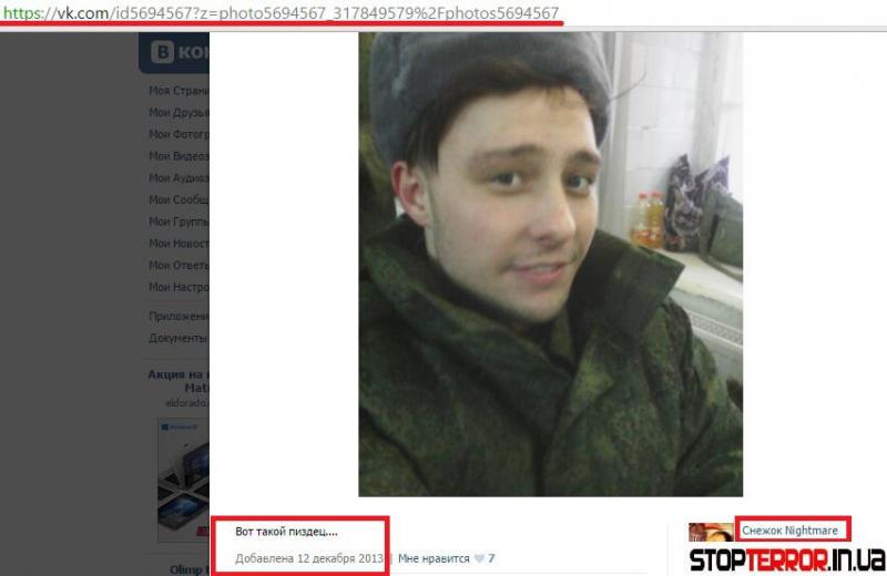 Также удалось установить, в каком незаконном вооруженном формировании проходит службу солдат-контрактник Хорев Артем. Данным подразделением является Отдельная мотострелковая бригада «Беркут» ДНР, в/ч 08803. Штаб Бригады «Беркут» дислоцируется в городе Горловка.