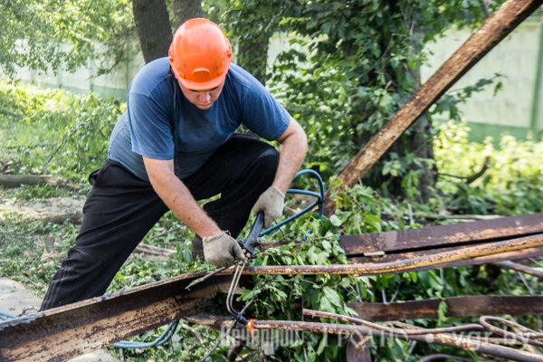 Потом занялись другой вышкой. Думали, что она упадет в сторону гипермаркета «Алми» и дорогу не заденет. Не исключали возможности, что ствол все-таки упадет и на проезжую часть. Поэтому выставили двух человек по разные стороны, чтобы они остановили движение на момент падения.