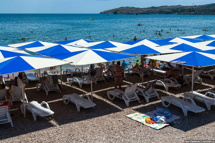 Что касается фотографий с пустыми пляжами. Я понимаю, что фото из этого поста могут вырвать из контекста и начать трясти ими, доказывая, что в Крым никто не едет отдыхать. Сразу хочу сказать, что я не проводил исследование, не считал людей, не наблюдал за пляжами и не выяснял причины, по которым на одном пляже народу много, а на другом мало. Возможно, этому есть какое-то логичное объяснение. Я просто показываю, что вижу, и рассказываю вам то, что мне рассказывают местные. Ничего не приукрашивая и особо не драматизируя. А вы делайте выводы сами.