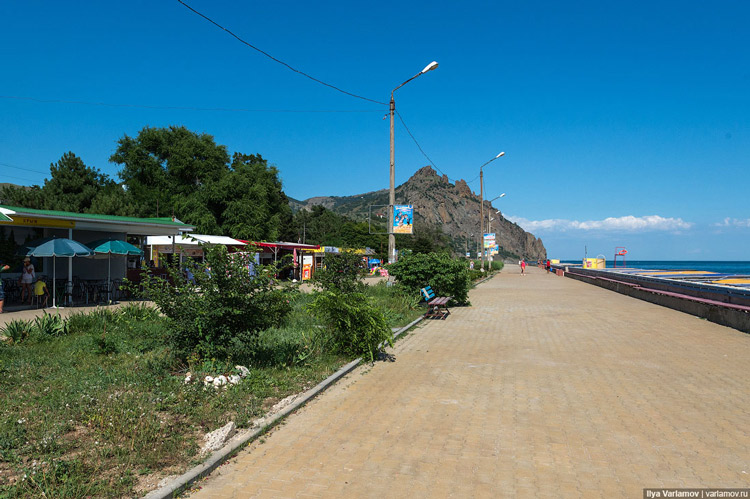 Заедем в соседний Коктебель. Здесь людей больше, но тоже нет аншлага.