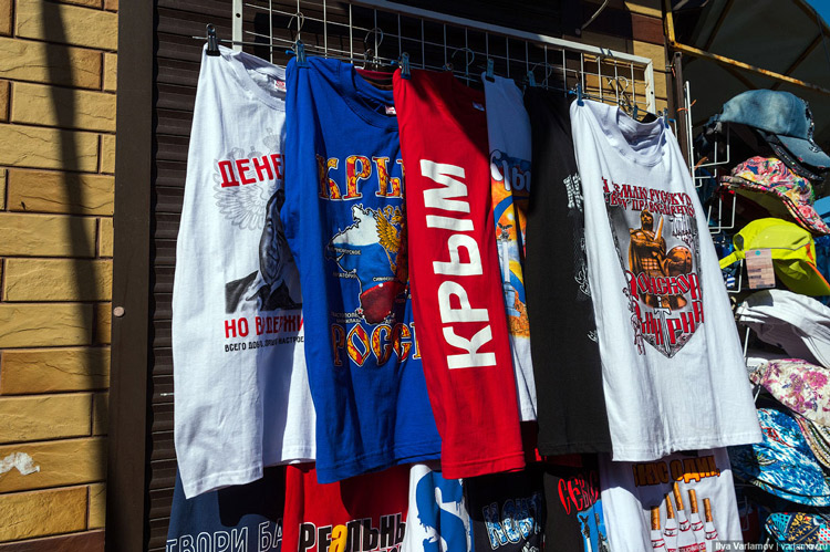 Интересно, что на футболках сменились принты. Вместо «вежливых людей» и Путина теперь вполне нейтральные. Стало меньше политики и милитаризма».