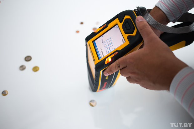 Количество разных металлов в монетах мы установили с помощью спектрометра (если точнее — портативного рентгено-флуоресцентного спектрометра NITON XL2 Gold), аттестованного по белорусским нормам. С измерениями нам помогла компания «Промтехприбор».