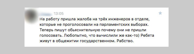Независимых профсоюзов в стране нет, отстаивать права негде. Свежайший пример, присланный мне вконтакт-френдом прямо во время написания поста (оставлю без комментариев), дает достаточно хорошее представление о ситуации на предприятиях: