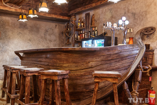 В баре два зала. У входа смогут расположиться компании на четверых. Зал у барной стойки, которая напоминает драккар — древний корабль викингов, подойдет для многолюдных встреч.
