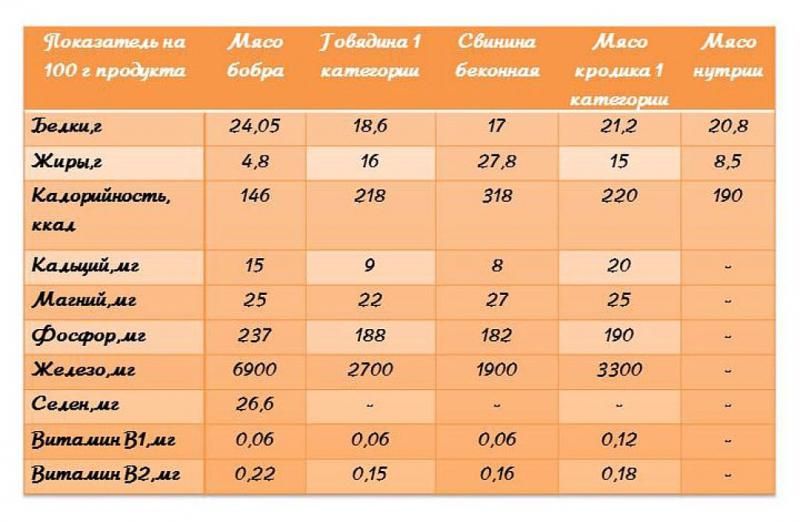 Только в бобрятине содержится селен, и у нее самая низкая калорийность