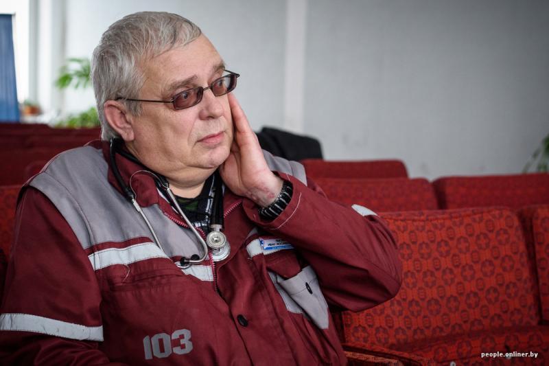 Из-за аккуратного ряда белых микроавтобусов, опоясанных алыми лентами с надписью «Скорая помощь», показывается седой мужчина в затемненных очках. На бедже написано «Лыско Иван Иосифович». Здесь он самый опытный работник. Последние четыре года врачует в бригаде интенсивной терапии — по сути, реанимации на колесах, пишет onliner.by.
