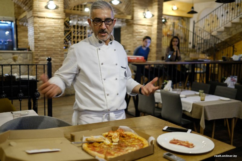 — Что такое пицца? Это хлеб. Она должна иметь вкус хлеба, запах хлеба, хрустеть, как хлеб. Чем пахнет эта пицца? Только жиром, — ставит коробку на стол итальянец.