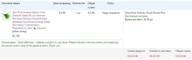 Юрий регулярно заказывает товары на AliExpress. К примеру, в конце января он заказал искусственные цветы за 1,1 доллара. Покупку ему отправили бесплатно.
