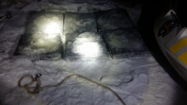 Как оказалось, контрабандисты сконструировали плоты, поставлены на круглый снег и лед, по-видимому, в попытке смоделировать льдину.
