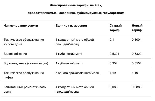 Тариф на техобслуживание жилого дома утвердили на уровне 0,1004 рубля за 1 квадратный метр общей площади жилого помещения, а тариф на капитальный ремонт жилого дома — 0,0883 рубля за 1 квадратный метр общей площади жилого помещения.