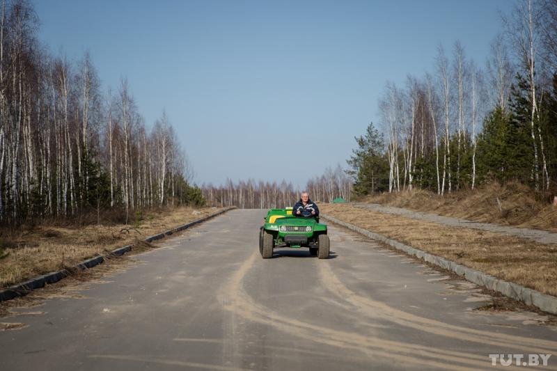«Гринвич» находится всего в нескольких километрах от Минска, рядом с биосферным заказником «Стиклево». Несмотря на близость к столице, добраться сюда по-прежнему непросто — асфальта еще нет, ехать придется по гравийке и ямам. На входе коттеджный поселок охраняется, стоит шлагбаум. Работники перемещаются по территории на специальных машинках, что обслуживают гольф-поля.