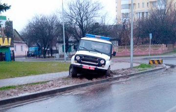Фотофакт: Милицейский УАЗ застрял в грязи в центре Пинска