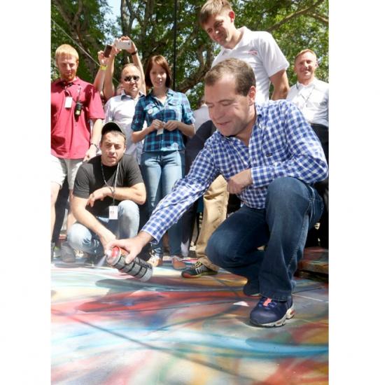 Журналисты также отметили, что премьер-министр России пытается скрыть свой маленький рост, покупая кроссовки на высокой платформе.