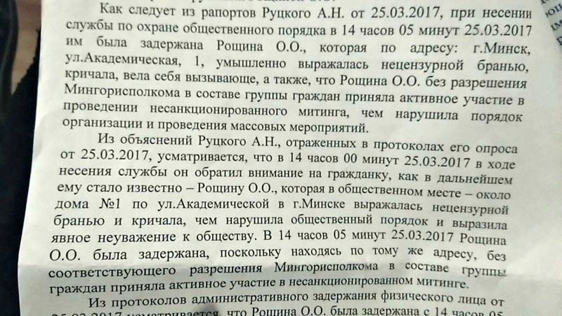 Девушка специально приехала в Минск, чтобы поддержать друзей, задержанных 15 марта. И у Академии наук в День Воли она также оказалась не случайно, с собой у нее была растяжка «всех не пересажаете», которую она планировала развернуть. Ольгу беспрепятственно пропустили через оцепление, а потом затащили в автозак.