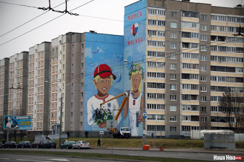 В июне 2016 года в центре Минска появилась мураль, символизирующая дружбу столиц Беларуси и России. Авторами выступили российские художники, а инициатором — правительство Москвы. Мальчик-Минск и девочка-Москва были призваны символизировать дружбу между народами, странами и городами, пишет «Наша Нiва».