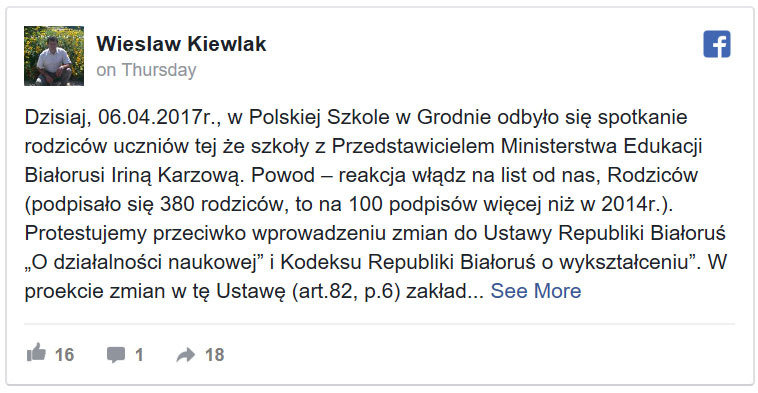 Также родители вспоминали о польско-белорусский договоренность, согласно которой эта школа, построенная за польские деньги, должна использоваться только для обучения на польском языке.