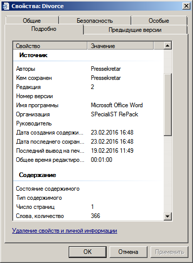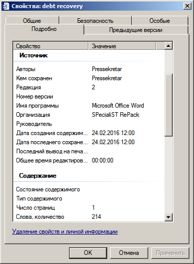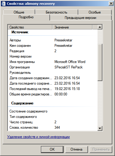 На официальном портале системы судов общей юрисдикции в разделе «Образцы документов для обращения в суд» все представленные образцы заявлений изготовлены с использованием модифицированной копии (by SPecialiST RePack) офисного пакета приложений Microsoft Office, на что указывают свойства файлов за авторством пресс-секретаря Верховного суда Беларуси, пишет известный блогер d-zholik.