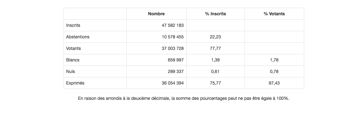 Ведомство подтвердило победу Эмманюэля Макрона, лидера центристской партии «Вперед!» и бывшего министра экономики республики: за него проголосовали 20,7 млн избирателей, которые отдали ему 66,06% своих голосов.