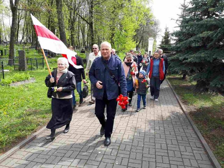 Политик с несколькими десятками соратников возложил цветы на Военном кладбище в Минске.