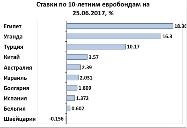 А с того, что процентная ставка оказалась весьма привлекательной: 7,125% по пятилетним бумагам и 7,625% — по десятилетним. По нынешним временам доходность просто роскошная: развитые рынки сегодня редко предложат инвестору больше 1%, а порой ставки и вовсе являются отрицательными. Это означает, что держатель бумаг не только не получает никакой прибыли, но еще и сам приплачивает эмитенту за то, что тот на время примет на хранение его капитал.