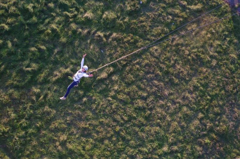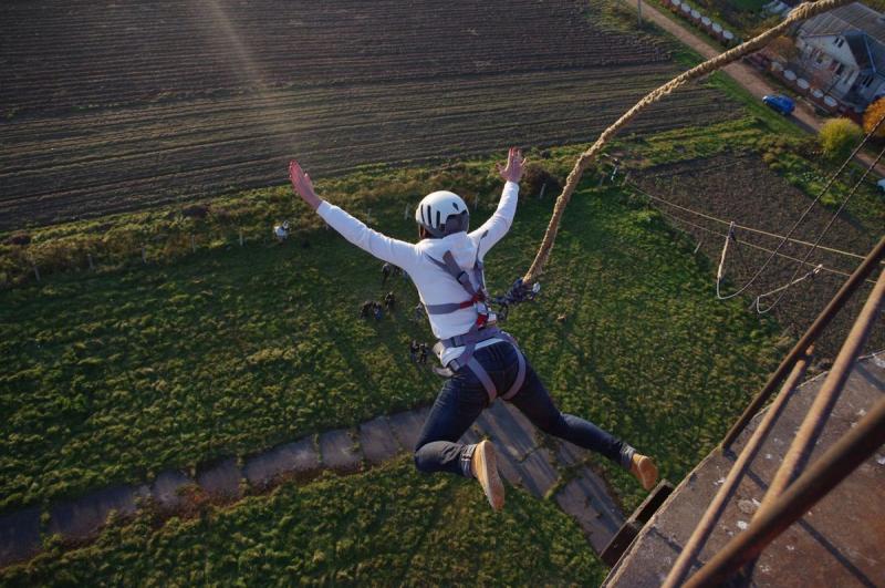 Первый раз прыгала с водонапорной башни. Около пяти минут я стояла на краю и не могла добровольно шагнуть в пропасть. Самое захватывающее – оторваться от края, а когда оторвался, тогда просто «качаешься» в воздухе, постепенно опускаясь вниз, и кайфуешь. Это оказалось страшнее, чем прыгать с парашютом, так как в «роупе» не за что ухватиться.
