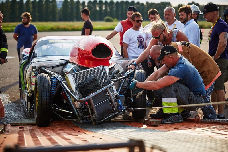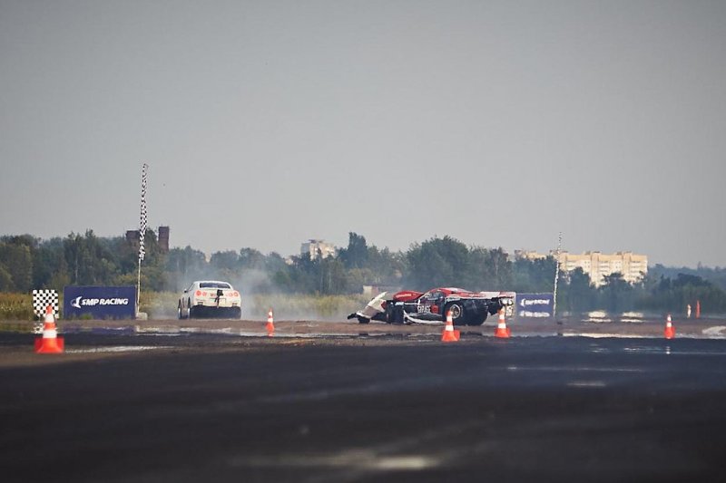 Трасса в минском аэропорту считается не самой лучшей по покрытию. Машины настолько мощные, что отрезок трассы приходится проклеивать специальным составом – иначе не будет хорошего зацепа колес с бетоном. Впрочем, клей помогает не всегда. За два дня – два инцидента. В первый день перевернулась Toyota MR2 россиянина Константина Найта – на 200 км/ч. К счастью, гонщик не пострадал, ведь внутри гоночных машин стоит стальной каркас безопасности, гонщик пристегнут к сиденью-ковшу спортивными ремнями, есть шлем и так далее.