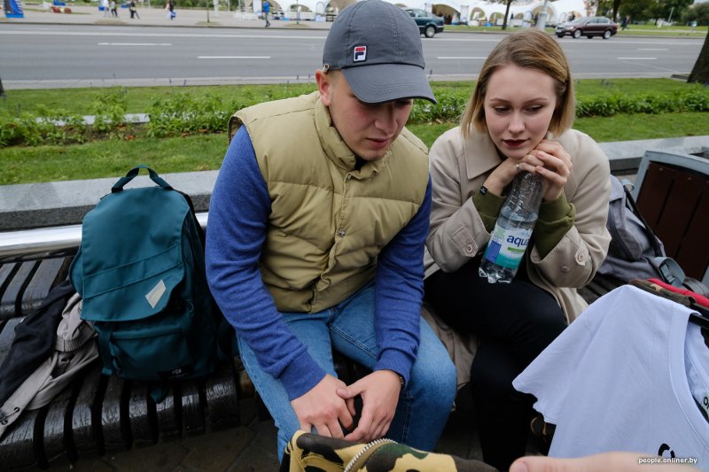 — Майка Off-White дорогая. У меня друг недавно купил такую больше чем за $2000, — Дмитрий, конечно, перегнул; хотя… ценообразование у нас свободное. — Крутые вещи. Уверен, что все это подделки, потому что в Минске оригинальных вещей таких брендов очень мало. Мог бы дать за Bape 50 рублей, но не буду. Тут какой-то «косяк» со строчкой шва.