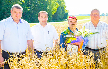 Посмотрите на комбайнера(на лицо) и на лица этих трех руководителей.Явно ,кушают из разного рациона.И этот худенький еще столько намолачивает.А если б их посадить за штурвал комбайна?Да там бы было три нормы.Но нет.Выбрали сидение в кабинетах.Бездельники.