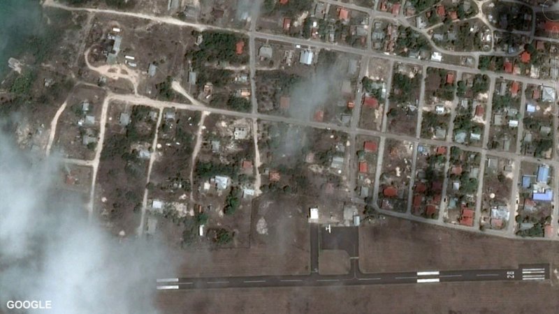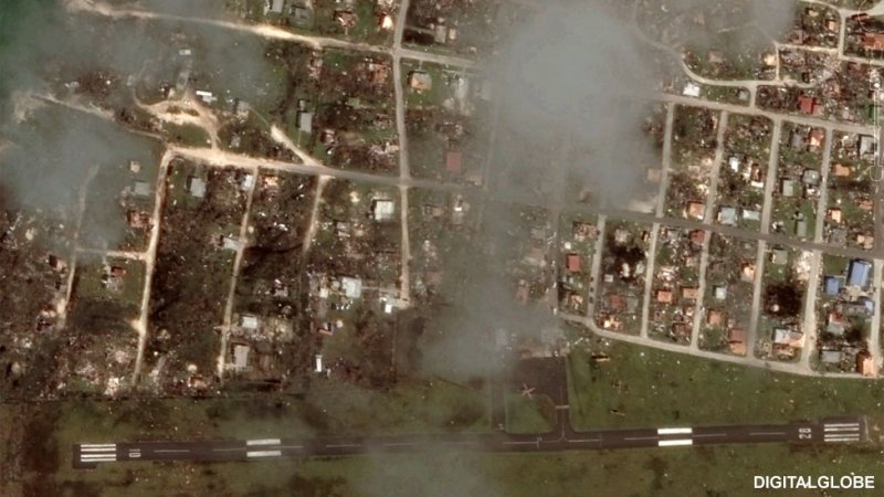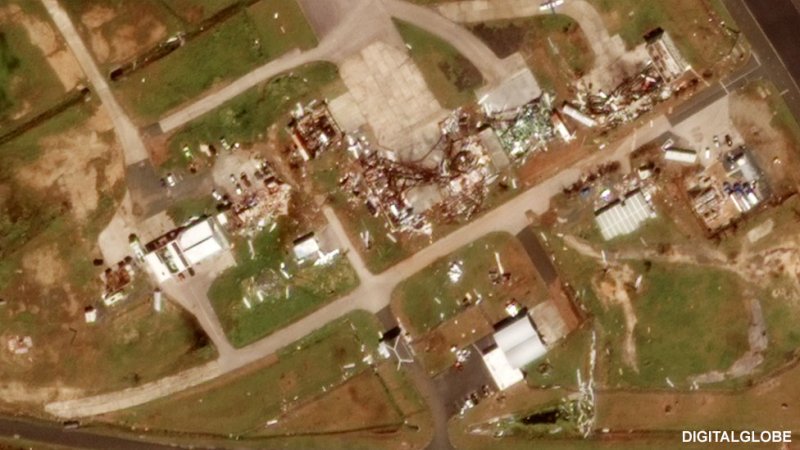Большая часть населения острова - чуть более 1600 человек - проживает в городе Кодрингтон, где, как показывают снимки со спутника, наибольшее количество разрушений.