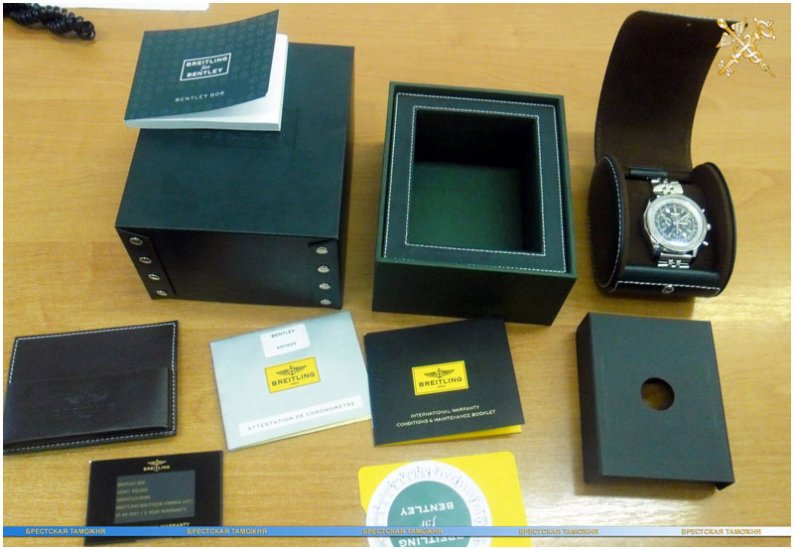 При досмотре транспортного средства среди личных вещей водителя должностные лица Брестской таможни обнаружили швейцарские часы «Breitling Bentley B06» с товарным и кассовым чеками, а также документами Тах Free. Согласно данной информации стоимость наручных часов составила 11 тыс. евро. В соответствии с законодательством при пересечении границы норма беспошлинного ввоза личного имущества, ввозимого на территорию ЕАЭС, составляет 1500 евро и 50 кг. В случае ввоза товаров чаще 1 раза в 3 месяца, нормы их беспошлинного ввоза составляют 300 евро и 20 кг.