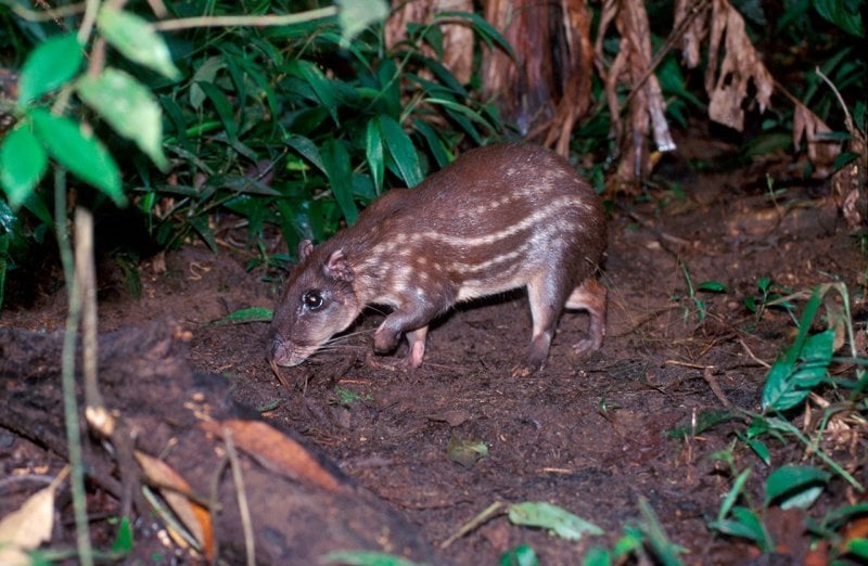 Пака — это грызун, он обитает в Южной Америке. Пака селится возле небольших водоемов, и, в случае опасности, ныряет в воду, в которой может находится достаточно долго. Внешне эти зверьки напоминают капибару, но с полосатым окрасом. А еще пака умеют очень громко хрюкать и рычать — у них необычное строение скул, которые служат еще и как резонаторы.