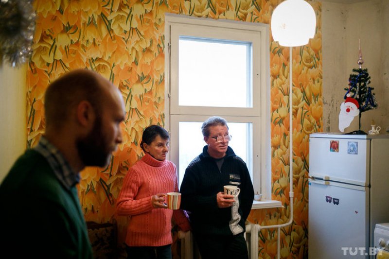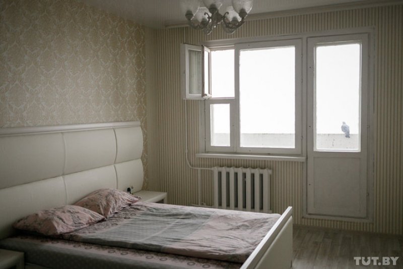 Пара поселилась на кухне, а спальню Юрий на первое время оставил для себя. Живет с бомжами, когда остается в Минске. Говорит, что на кровати разрешает спать своим новым гостям, но они отказываются.