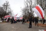 Участники шествия скандируют «Жыве Беларусь!» и «Беларусь перадусім!».