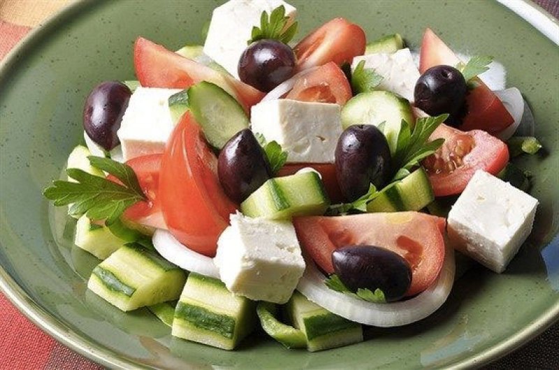 – Нарезка овощей (перец болгарский желтый, помидор желтый, брокколи, сельдерей, огурец, оливки, зелень);
