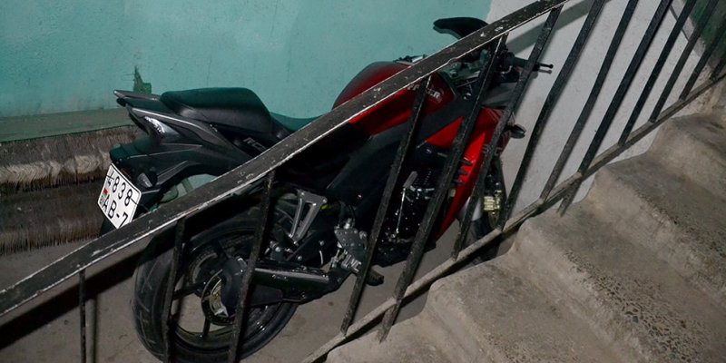 — По некоторым сведениям, мотоцикл в подъезд затаскивает человек, который снимает здесь квартиру. Наверное, затянуть его домой сил не хватает, так что мотоцикл стоит по лестницей, — отметил собеседник.
